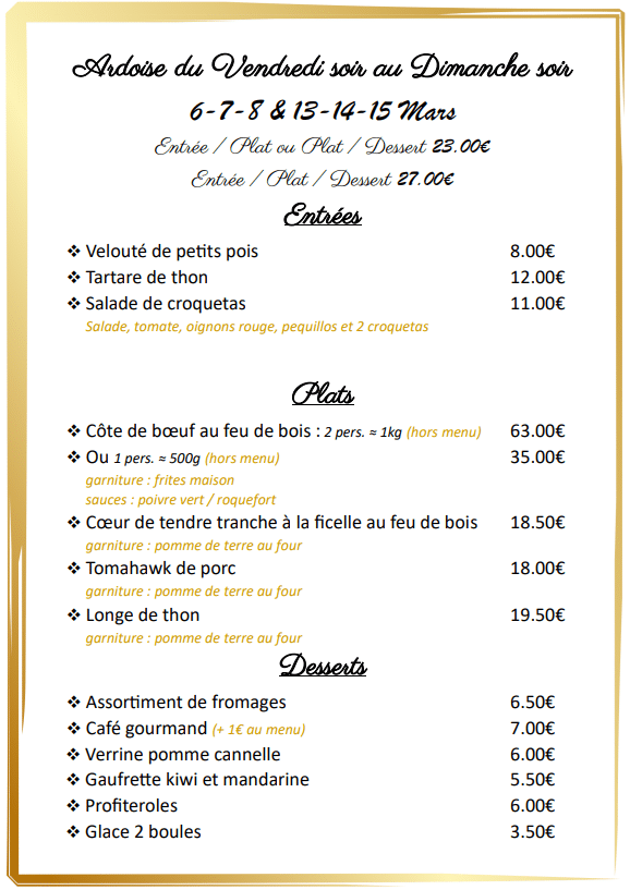 Chaque bouchée est une immersion dans l’authenticité, une expérience culinaire inoubliable qui réveille les papilles. Venez savourer une cuisine raffinée dans un cadre chaleureux, où le feu de bois réchauffe autant les plats que les cœurs !